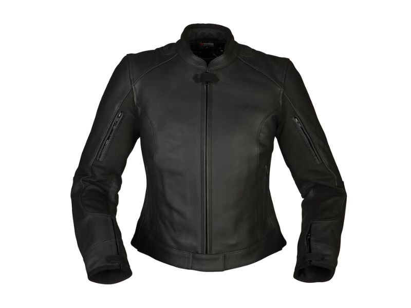 Jakna je izrađena od meke i izdržljive goveđe kože, koja osigurava odličnu otpornost na habanje i izuzetnu udobnost. Ženski kroj precizno prati liniju tijela, omogućavajući prirodan položaj tokom vožnje bez osjećaja zatezanja.